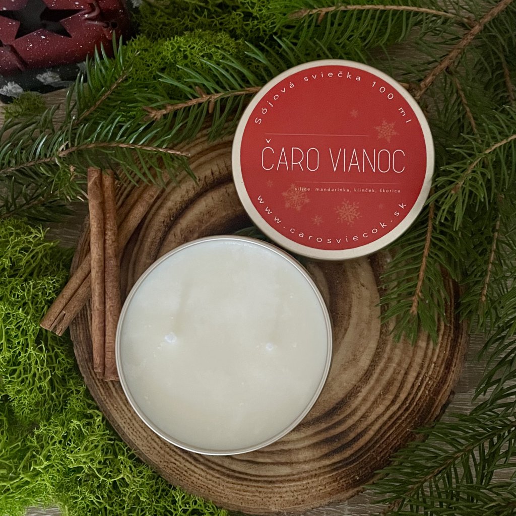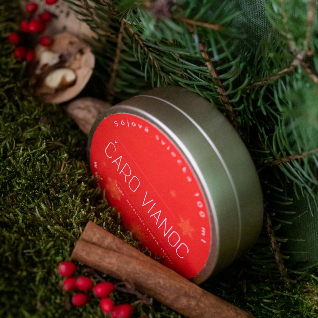 Táto sójová sviečka sa určite hodí k obdobiu Vianoc.Sviečka je ručne odliata do dózy v zlatistej farbe. Kompozíciu vône sme namiešali z prírodných silíc mandarínky, klinčekov a škorice.